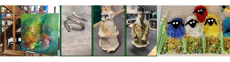 Der er mulighed for at lave keramik, male, lave koldglas, sølv, strikke og sy.