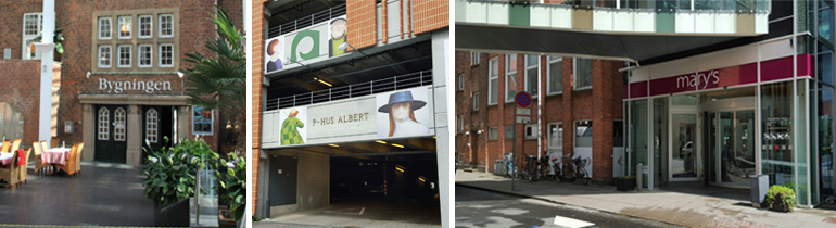 Du skal stadig bruge indgangen til "Paladspassagen" for at komme til Bygningens hovedindgang. Enten fra strøg-siden eller fra indgangen ved parkeringshuset Albert.