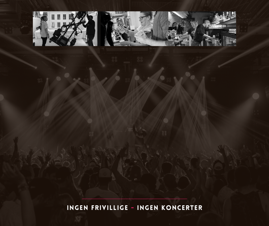 Til gengæld får du en masse fede koncertoplevelser, erfaring indenfor forskellige arbejdsområder i forbindelse med koncertafviklinger og du kommer til at møde en masse nye mennesker - både foran og bagved scenen. Ind i mellem samler vi vores frivillige til nogle hygsomme arrangementer - en god anledning til også at få hilst på nogle af de andre frivillige man måske ikke lige støder ind i når man har vagt...